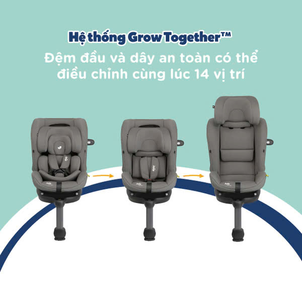 • Hệ thống Grow Together™ giúp đệm đầu và dây an toàn có thể điều chỉnh cùng lúc 14 vị trí mà không cần thắt chặt lại dây an toàn