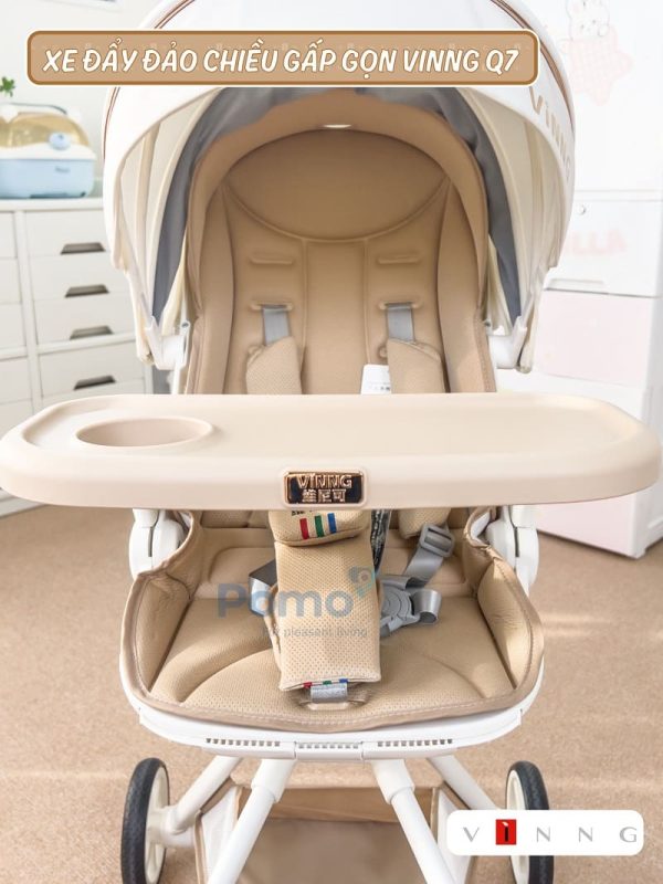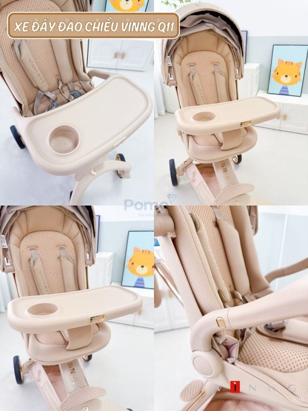 Xe đẩy Vinng Q11-2025 có bàn ăn kèm quạt điều hòa là dòng xe đẩy cao cấp đến từ thương hiệu Vinng. Được tích hợp giữa tính năng gấp siêu gọn mang theo mọi chuyến đi của gia đình; đồng thời là khoang nằm rộng rãi điều chỉnh nằm, ngả, ngồi cho bé từ sơ sinh. Khác biệt hẳn ở phiên bản Q11, các ba mẹ sẽ thấy sự hài lòng tuyệt đối bởi thiết kế kèm quạt điều hòa thông gió cực kỳ thoáng mát. Chấm dứt nỗi lo nóng bí, khó chịu, đổ mồ hôi cho bé khi nằm ngủ. Chất liệu cao cấp và an toàn của xe đẩy Vinng Q11 cũng là một điểm cộng lớn. Khung xe được làm từ hợp kim cực kỳ chắc chắn, mái che vải dệt thoáng khí và bền bỉ, đảm bảo sự thoải mái và an toàn cho bé yêu trong mọi chuyến đi. Hệ thống phanh an toàn và kết cấu bánh xe lớn giúp việc di chuyển trở nên dễ dàng và mượt mà trên nhiều loại địa hình khác nhau, từ đường phố đến công viên.